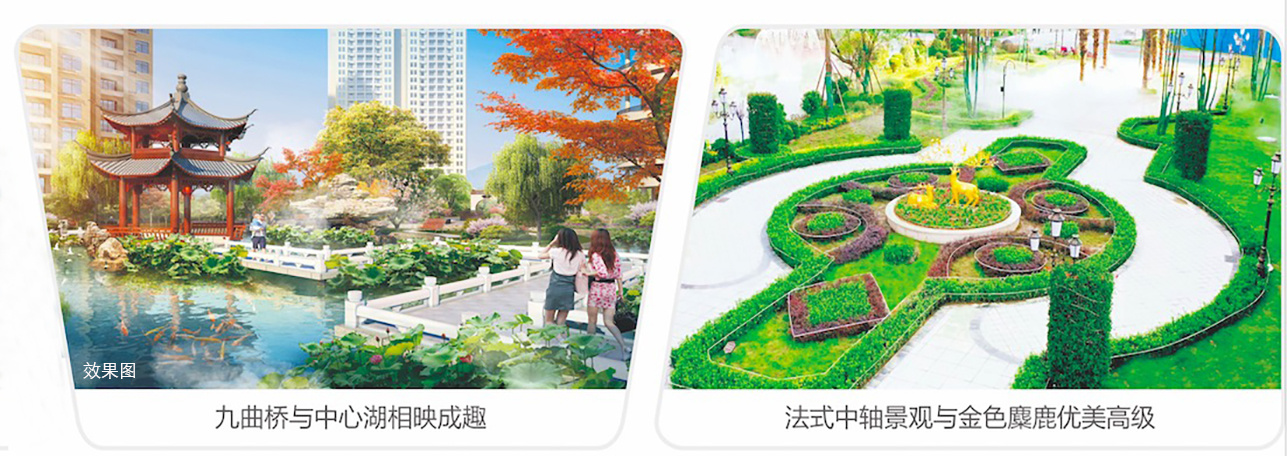目前項目已打造的(de)景觀綠(lǜ)化(huà)總面積↔↓↕φ約5萬㎡,綠(lǜ)意盎然,美(měi)不(bù)勝收,1萬多(duō)㎡湖(hú)島中庭大α (dà)氣秀美(měi),九曲橋與中心湖(hú)相(xiàng)映成趣;法<πγ$式中軸景觀與金(jīn)色麋鹿優美(měi)高(gāo)級;環形景觀綠(∑€lǜ)化(huà)與水(shuǐ)體(tǐ)靈動雅緻;亭台廊島與ε 松澗泉霧浪漫典雅。